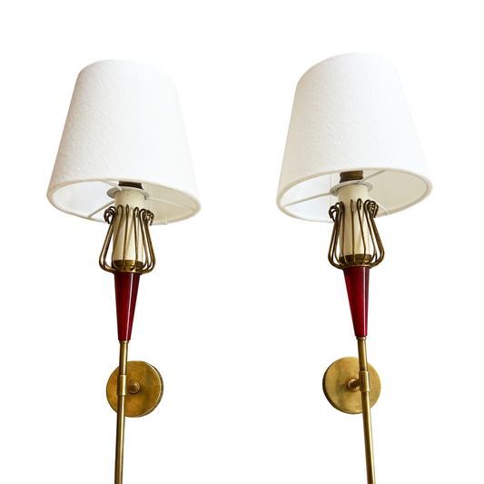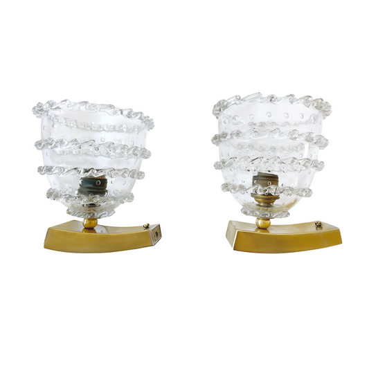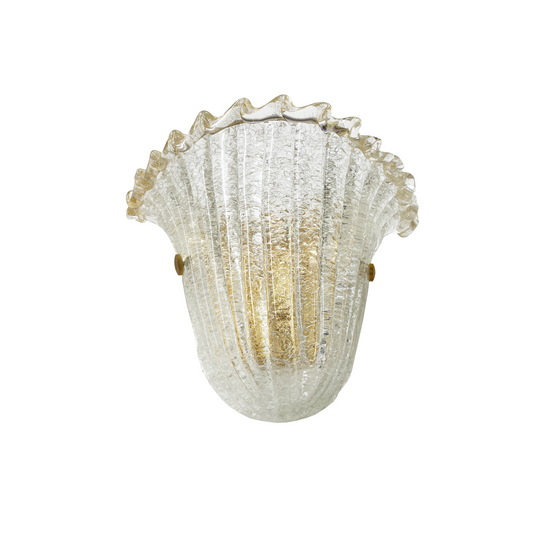 Single Ribbed Murano Glass Sconces with 24kt Gold Wave Piping