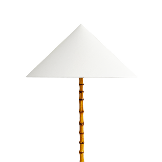 Bamboo and Brass Floor Lamp with Conical Linen Shade