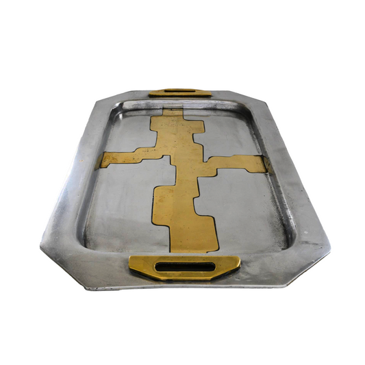 Vintage Brutalist David Marshall Aluminum and Brass Serving Tray