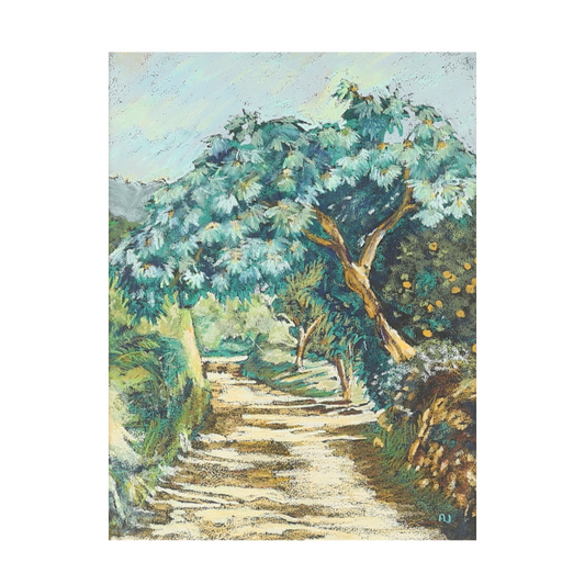 Signed Vintage "Orange Grove" Oil Pastel on Paper