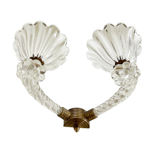 Pair of Vintage Murano Crystal Dew Shell Shaped Sconces