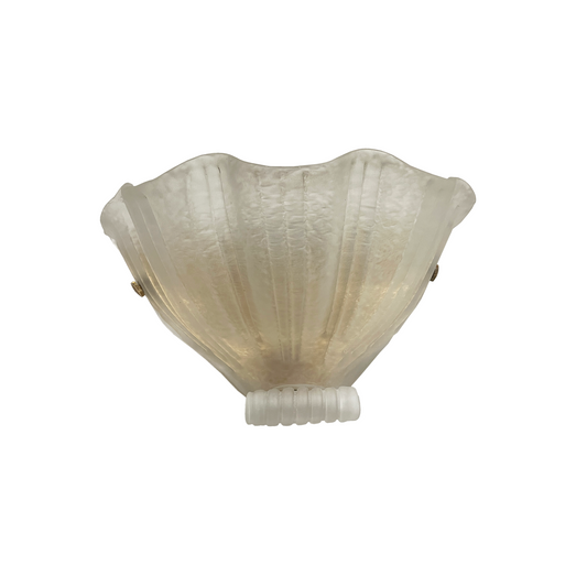 Large Pair of Vintage Frosted Clam Murano Glass Sconces