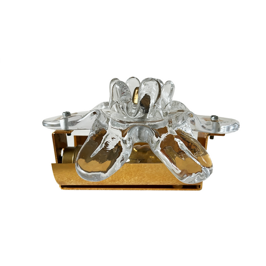 Single Vintage Brass and Cast Glass Flower Wall Light by Orrefors Sweden