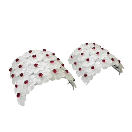 Pair of Seguso Opaque White Flower Sconces with Red Centres