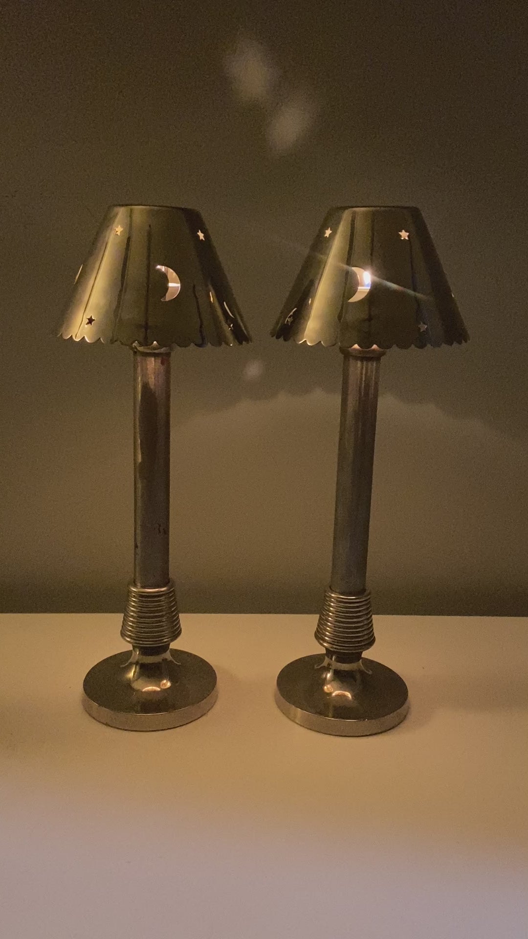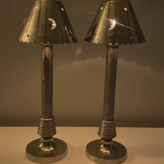 Pair of Refurbished Italian Tea Lights with Moon and Star Motifs - PreOrder